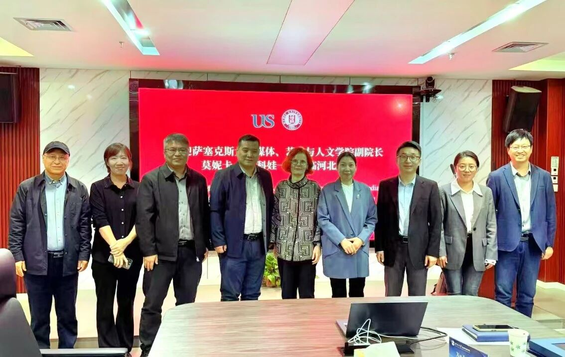 2025年10月15日,英国萨塞克斯大学传媒、艺术与人文学院梅蒂科娃副院长及潘晶博士莅临我院。我院彭焕萍院长、滑晓军书记、商建辉副院长、白树亮副院长、徐兰英副书记、赵树旺教授和我校国际合作处张明辉副处长会见了梅蒂科娃副院长代表团。双方就两校间学术交流与学生联合培养事宜进行了会谈。彭焕萍院长向英方代表团介绍了我院的发展历程、学科地位、师资力量、学科优势等,建议两校加强学术合作、开展国际学术会议、共同培养...