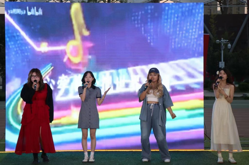 21播音王庄瑜、21新闻2徐亦洋、21新闻2司孟涵、23新闻1雷梦垚、23广电朱晗同学带来《夏天的风》+《阿刁》+《日不落》串烧,把夏日故事、不服输的倔强与阳光活力融入旋律。