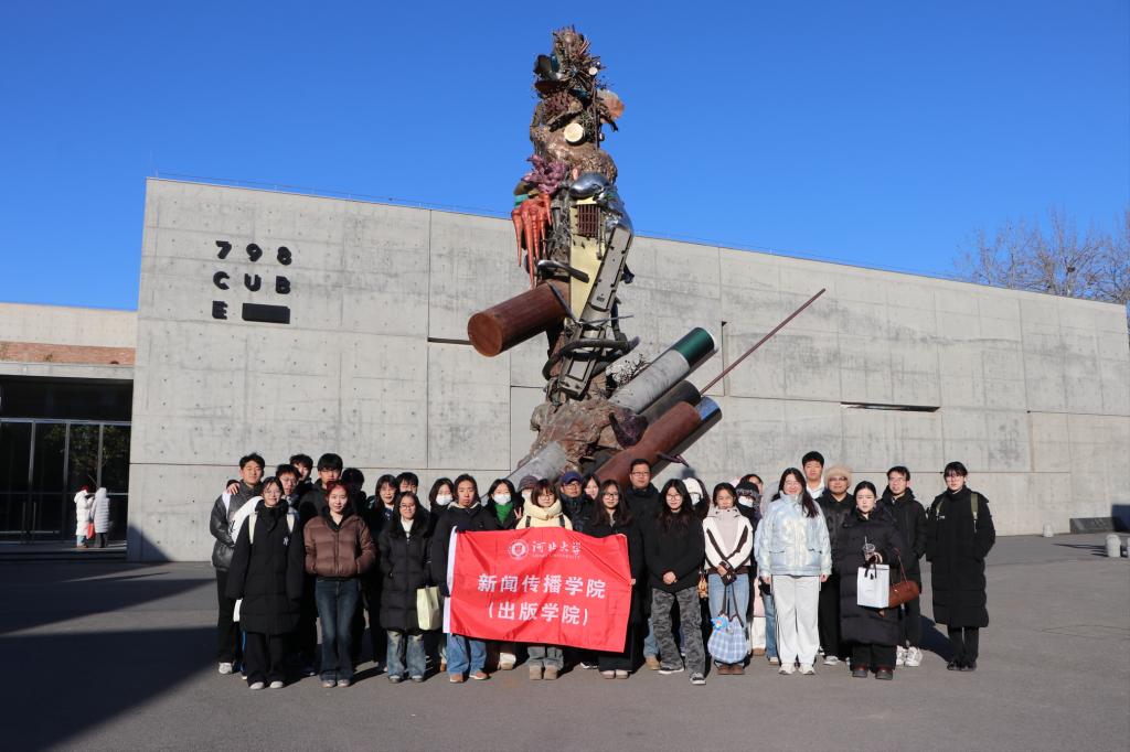 下午,师生一行转赴北京798艺术街区进行考察学习。798艺术区是由旧工业厂房改造而成的著名文化创意产业集聚区,汇集了众多画廊、艺术中心、设计工作室、书店、博物馆及文创展示区。在这里,师生们漫步于充满现代艺术气息的街巷,参观了多个艺术展览与文创空间,亲身感受了历史工业遗迹与当代文化艺术碰撞融合所带来的独特魅力。同学们对文化创意产品的开发模式、艺术机构的运营理念、以及文化产业与城市更新、旅游消费的融合路径有了更具体的了解,深刻体会到创新思维在文化内容生产与传播中的核心价值。