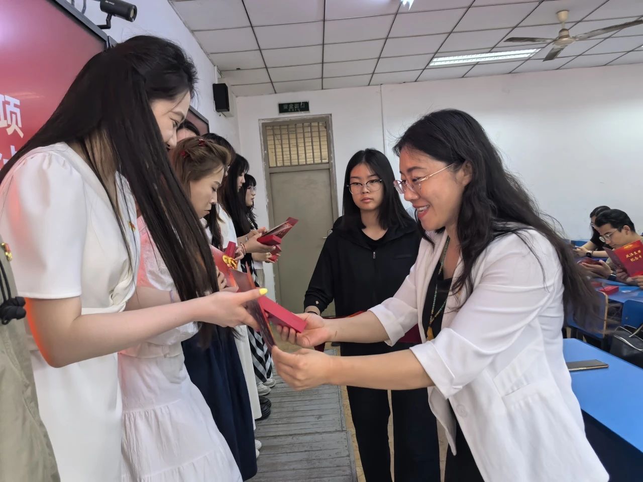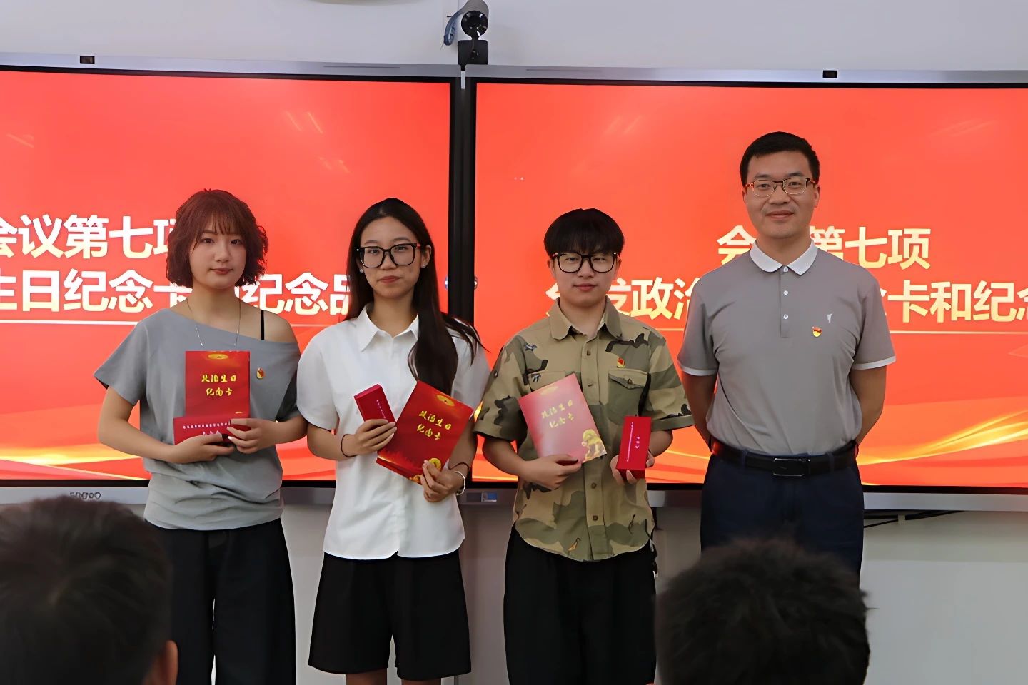 最后,学院领导及各支部书记为毕业生党员们分发政治生日纪念卡和纪念品。小小的卡片和纪念品,承载着党组织对党员们的深切关怀与美好祝福。