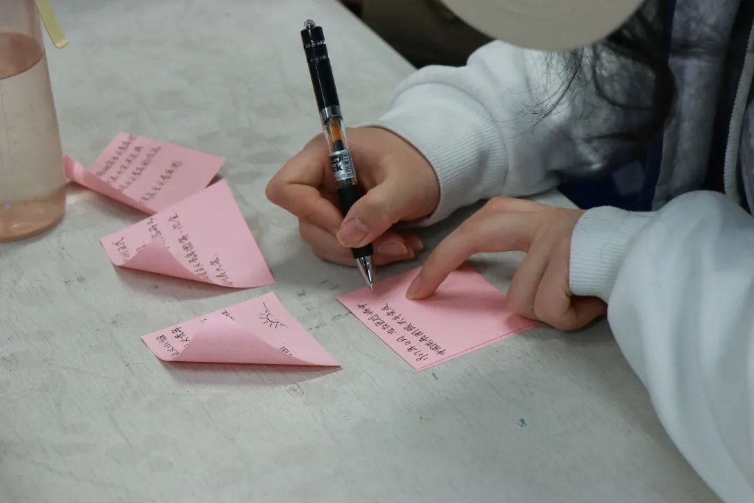 你看!每一位新传志愿者都在全神贯注地书写着心中的雷锋精神,他们的笔触刚劲有力,他们的神情一丝不苟。笔墨之下流露出的是新传学子对雷锋精神的赞美与热爱,便利贴上展现的是新传学子对雷锋精神的继承与弘扬。
