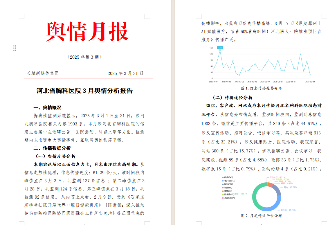 实习期间负责河北省应急管理厅、涉县网信办、高速公路交警总队、河北省公安厅、廊坊临空、承德医学院等单位的舆情监测;参与撰写河北省工商联舆情周报、涉县《舆情半月刊》,河北省胸科医院舆情、雄安新区应急管理局舆情等月报20份,河北融投担保集团舆情分析、石家庄输油气分公司传播力分析等专报10+份;整理事件全网整体概况3次,使用长城智能风控云平台负责省政府网站运维、冀云融媒体平台上稿20+篇。