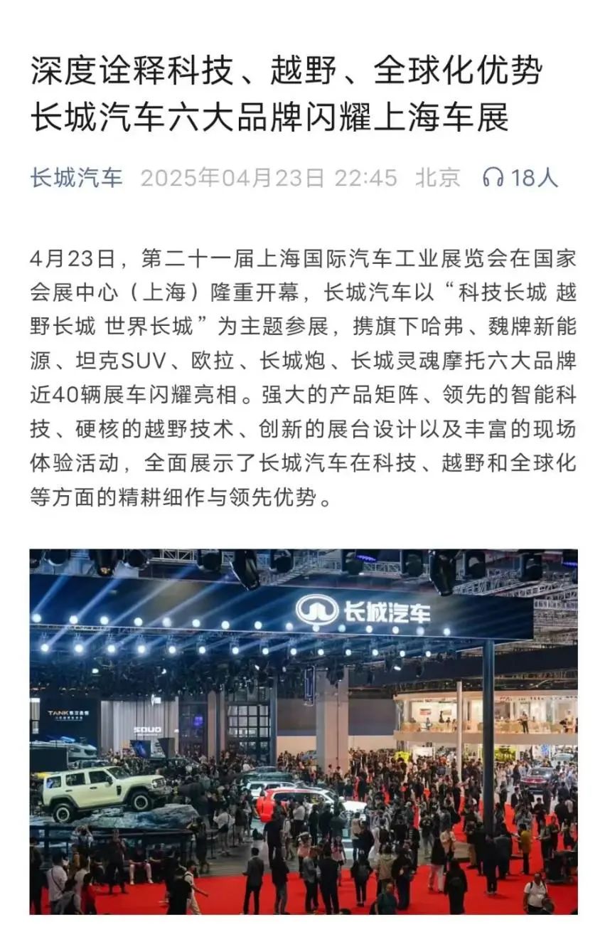 作品介绍:此文章深入报道长城汽车亮相第二十一届上海国际车展的盛况。全面记录了新 Logo的发布,以及科技生活、越野重机两大产品集群亮相等内容。细致梳理了二代哈弗枭龙MAX等重磅车型特性,如哈弗猛龙的美学科技融合、魏牌高山的多元车身选择等。