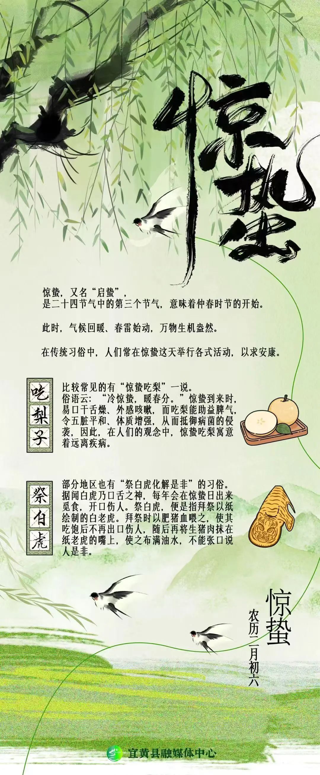 作品介绍:作品为二十四节气之惊蛰的海报及传统节日清明节的海报组,发表于学习强国平台。惊蛰海报以绿色为主色调,配合柳树等春日元素,体现春天气息,文案以介绍惊蛰节气的传统习俗为主,彰显文化性和趣味性;清明节海报组亦以绿色为主色调,暗示清明节身处春天这一信息,配合雨丝效果,彰显“清明时节雨纷纷”的节气特点,海报组共有四张,分别介绍不同的清明节传统习俗。